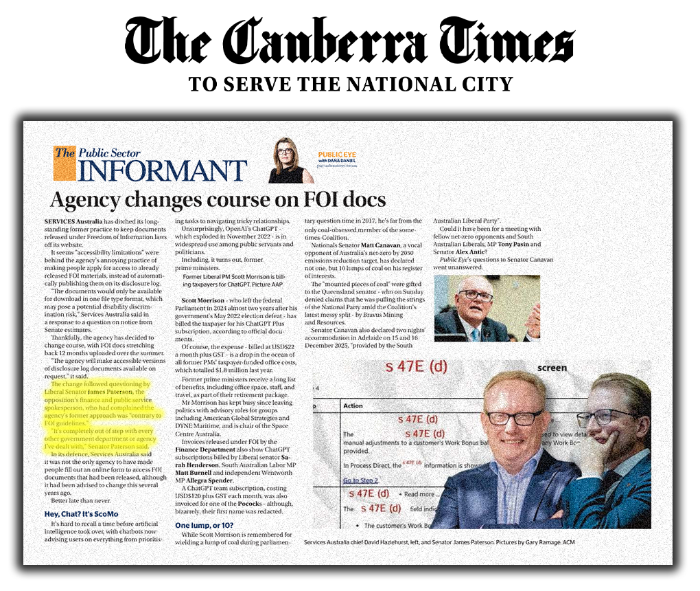 The change followed questioning by Liberal Senator James Paterson, the opposition's finance and public service spokesperson, who had complained the agency's former approach was "contrary to FOI guidelines."