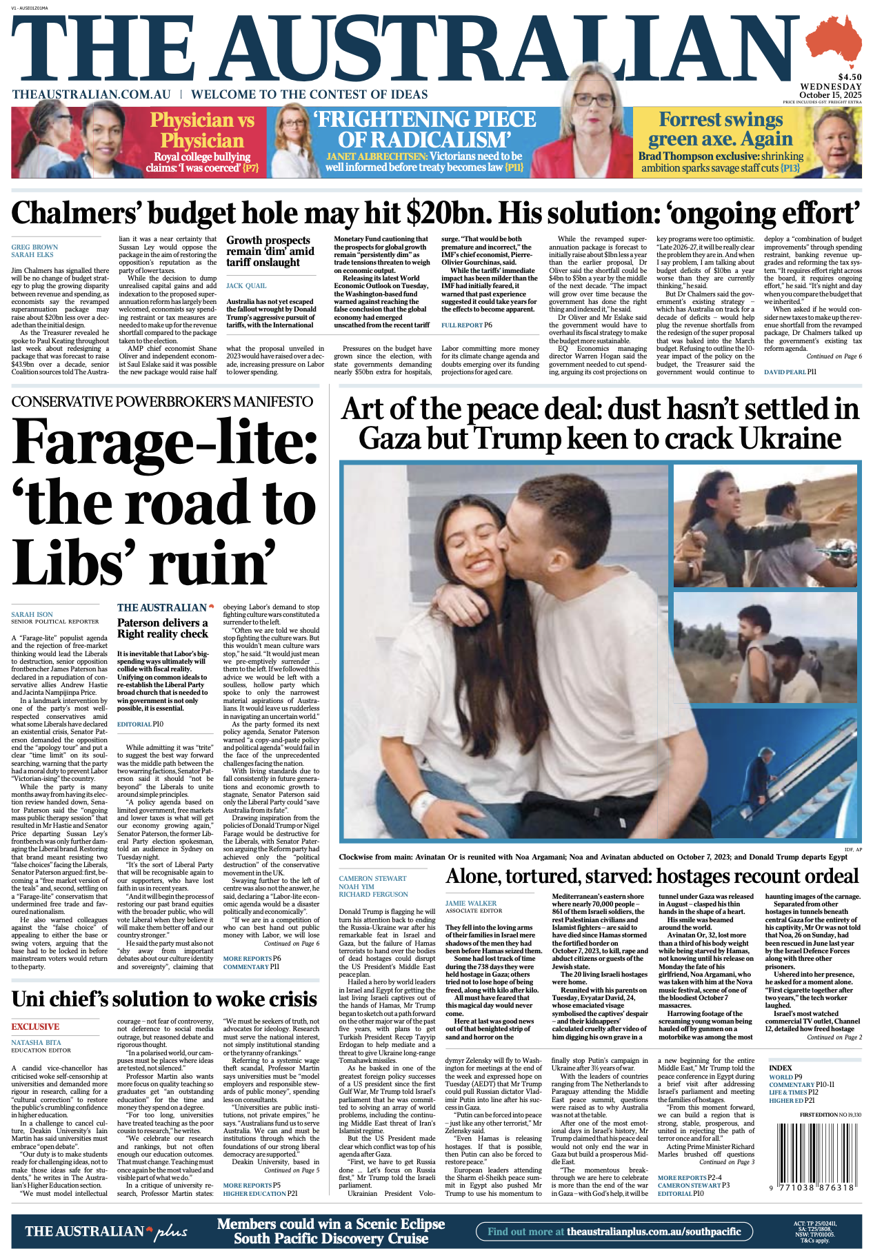 But drawing inspiration from the policies of Donald Trump or Nigel Farage would be destructive for the Liberals, with Senator Paterson arguing the Reform party had achieved only the “political destruction” of the conservative movement in the UK.