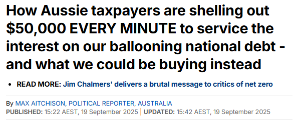 'It means we are setting new records for indebtedness, yet the government’s answer is to keep spending more, despite having to spend $50,000 every minute on interest.