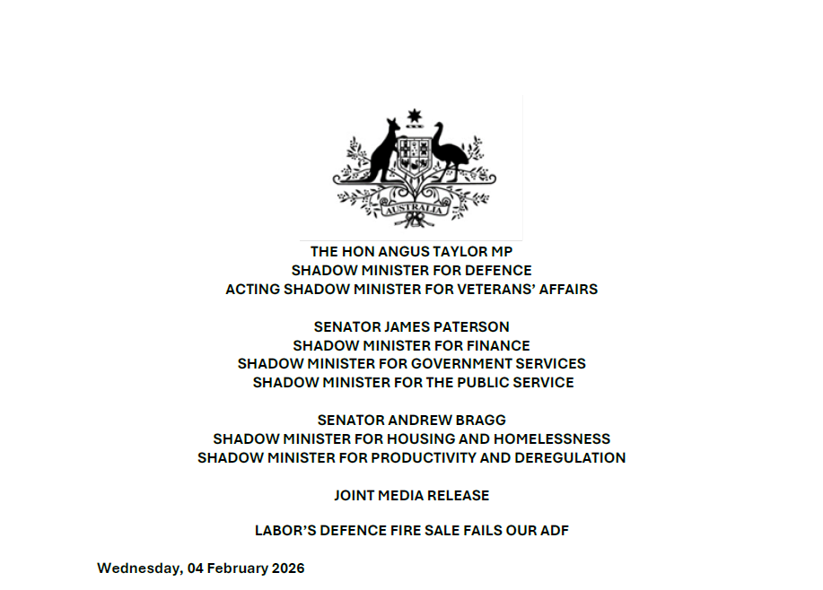 Senator James Paterson said taxpayers should only support divestments that improve the Commonwealth’s bottom line after all remediation and transition costs. “If land is sold, the money must stay in Defence and be transparently reinvested into capability,” Senator Paterson said. “This must be an accountable, value-for-money process, not a vehicle for waste or budget tricks.”