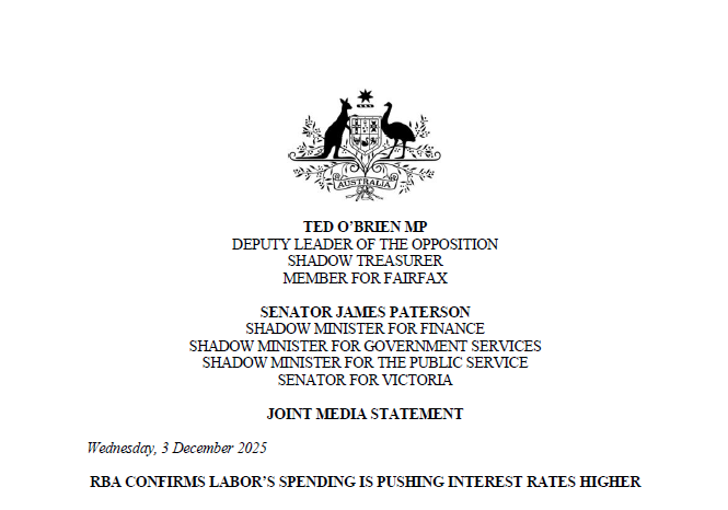 The Reserve Bank has confirmed that Labor’s spending spree and rising deficits are putting upward pressure on interest rates.