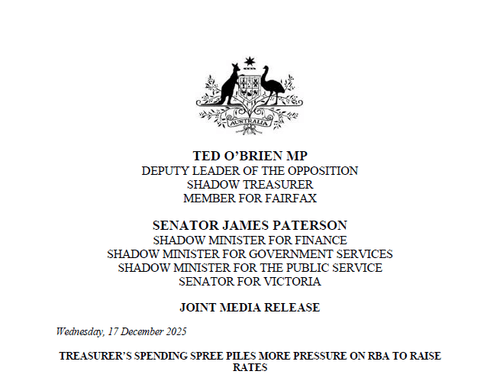 The 2025-26 Mid-Year Economic and Fiscal Outlook (MYEFO) released today confirms the Treasurer is pushing government spending up even further at a time when economists warn spending restraint is needed to prevent rate increases.