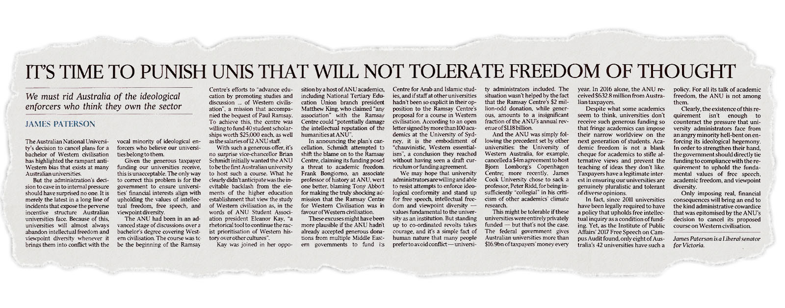 Despite what some academics seem to think, universities don’t receive such generous funding so that fringe academics can impose their narrow worldview on the next generation of students. Academic freedom is not a blank cheque for academics to stifle alternative views and prevent the teaching of ideas they don’t like. Taxpayers have a legitimate interest in ensuring our universities are genuinely pluralistic and tolerant of diverse opinions.
